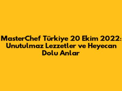 MasterChef Türkiye'nin 20 Ekim 2022 tarihli bölümü, mutfak tutkunları için unutulmaz anılarla dolu bir geceye sahne oldu. Yarışmacıların performansı, jüri üyelerinin değerlendirmeleri ve programın genel atmosferi, izleyicileri ekranlara kilitlemeyi başardı. Bu özel bölüm, MasterChef Türkiye'nin sadece bir yemek yarışması olmadığını, aynı zamanda bir yaşam tarzı ve tutku olduğunu bir kez daha gösterdi.