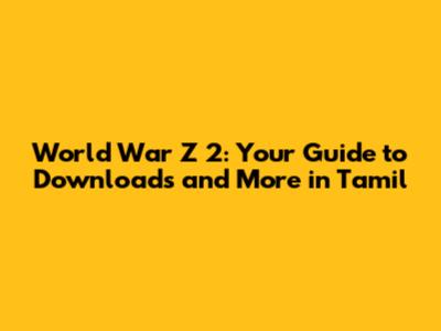 World War Z 2: Tamil Download Guide & Insights